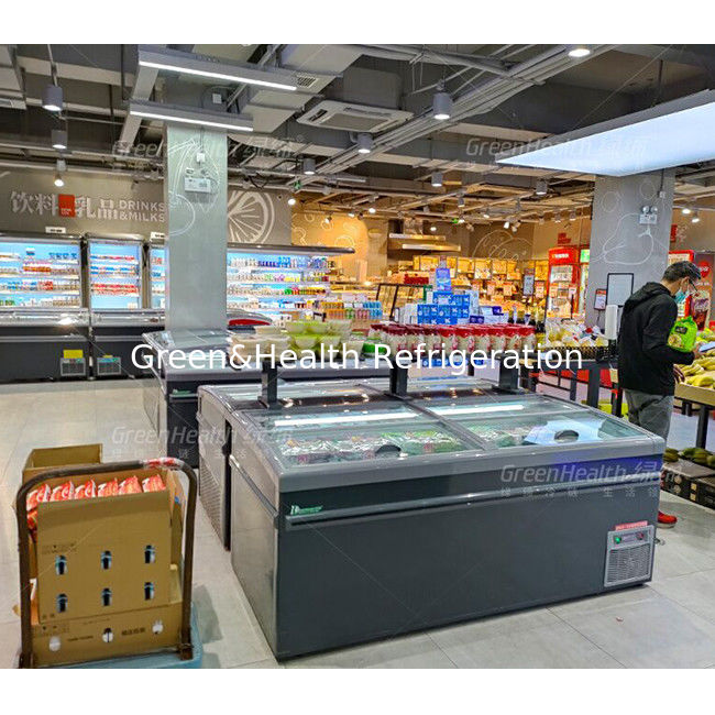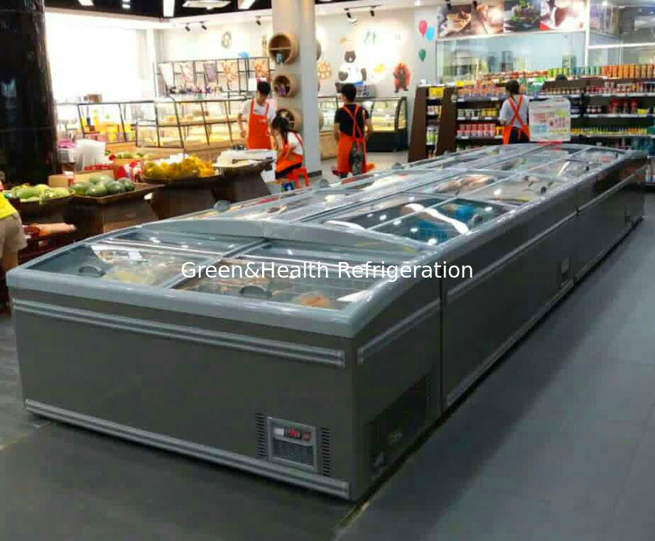 ประตูกระจก รวมซุปเปอร์มาร์เก็ต เกาะ Freezer / Display Freezer อัตโนมัติ defrost
