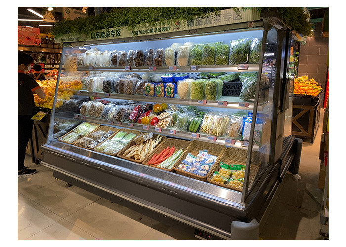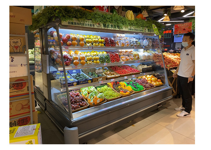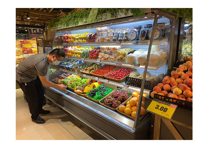 ร้านอาหาร R134a ซุปเปอร์มาร์เก็ต แสดงเครื่องเย็นเปิดหลายชั้นสําหรับผลไม้